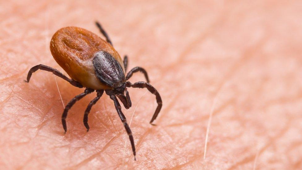 Ticks are implicated in the transmission of Lyme disease and you should seek medical advice if a rash appears at the site of a bite. Only remove them with a twist to avoid leaving the mouthparts in the skin.